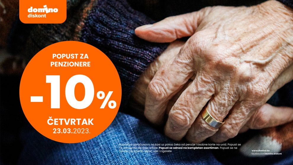 Dragi penzioneri, četvrtak je vaš dan za uštede jer u Domino diskontu možete ostvariti 10% popusta na ukupnu kupovinu.