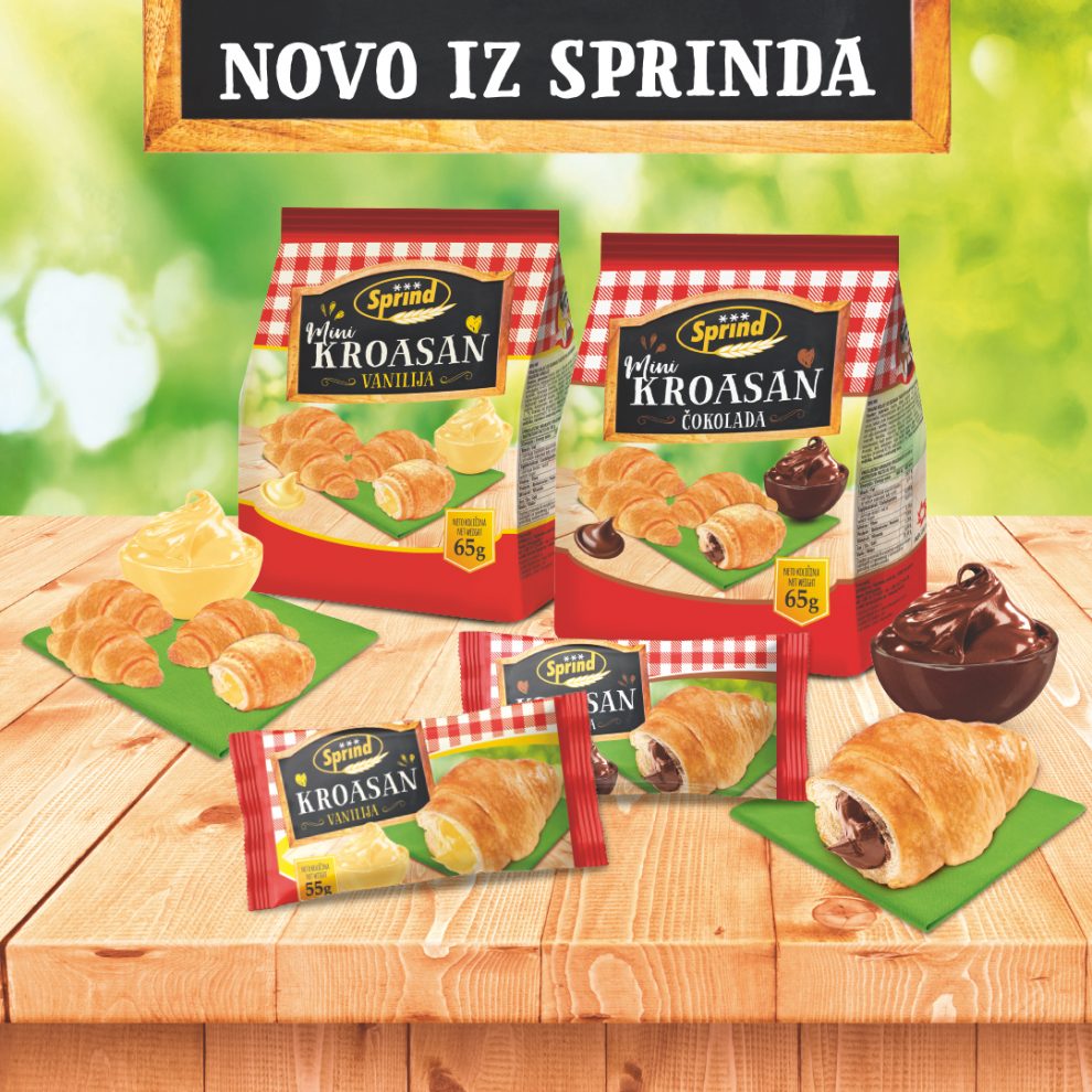 Sprind kroasani su odličan brzi obrok, na pauzi u školi ili poslu, poslastica za počastiti sebe ili svoje najmilije, te izvrstan slatki dodatak uz kafu – dnevna doza slatkog i ukusnog. Radi se o 100% domaćem proizvodu. U odnosu na druge domaće proizvode iz kategorije, Sprind kroasan razlikuje bogata aroma i veća količina punjenja, u besprijekornom lisnatom tijestu. Proizvodi su dostupni u dvije vrste punjenja – slatka čokolada i kremasta vanilija.