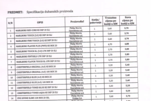Podsjećamo, od prekjučer se u BiH primjenjuju nove cijene za 34 vrste cigareta. Radi se o cigaretama koje proizvodi Tvornica duhana Rovinj (TDR).