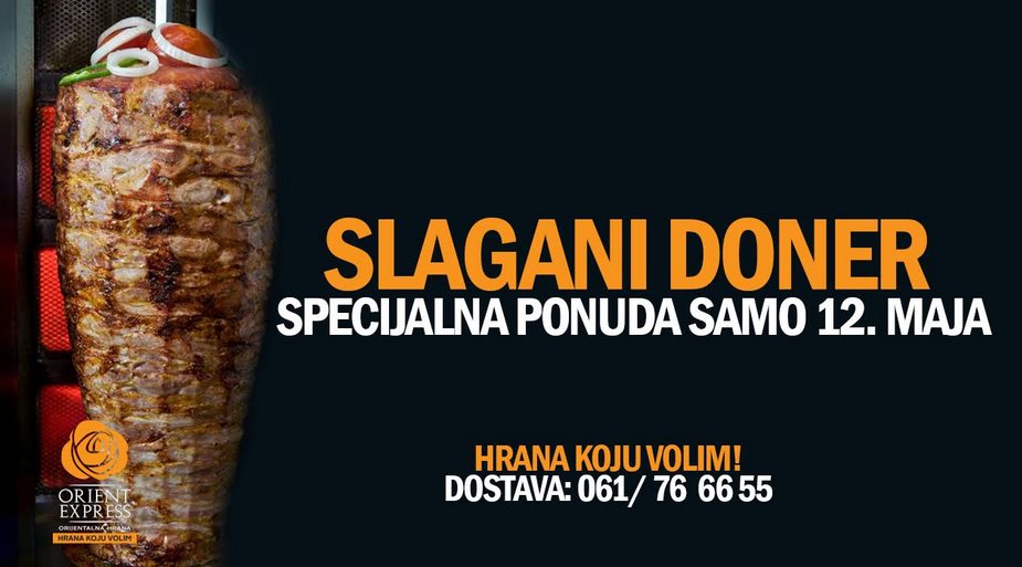 NOVO u Orient Expressu – slagani doner – Kako smo navikli do sada Orient Express uvijek nas iznenadi izvornim orijentalnim specijalitetom. Ovog petka 12. maja prvi put u našem gradu u ponudi je ručno slagani doner od pažljivo probranog junećeg buta.