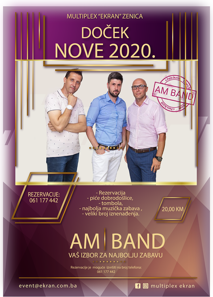 Najmlađi gosti Family Centra ekran će uživati u Novogodišnjoj čaroliji 29. decembra, a u 2020. godinu publika i gosti Family Centra Ekran ući će uz nezaboravan novogodišnji doček uz AM BAND. Sve informacije o navedenim događajima moguće je dobiti na broj telefona 061 177 442.