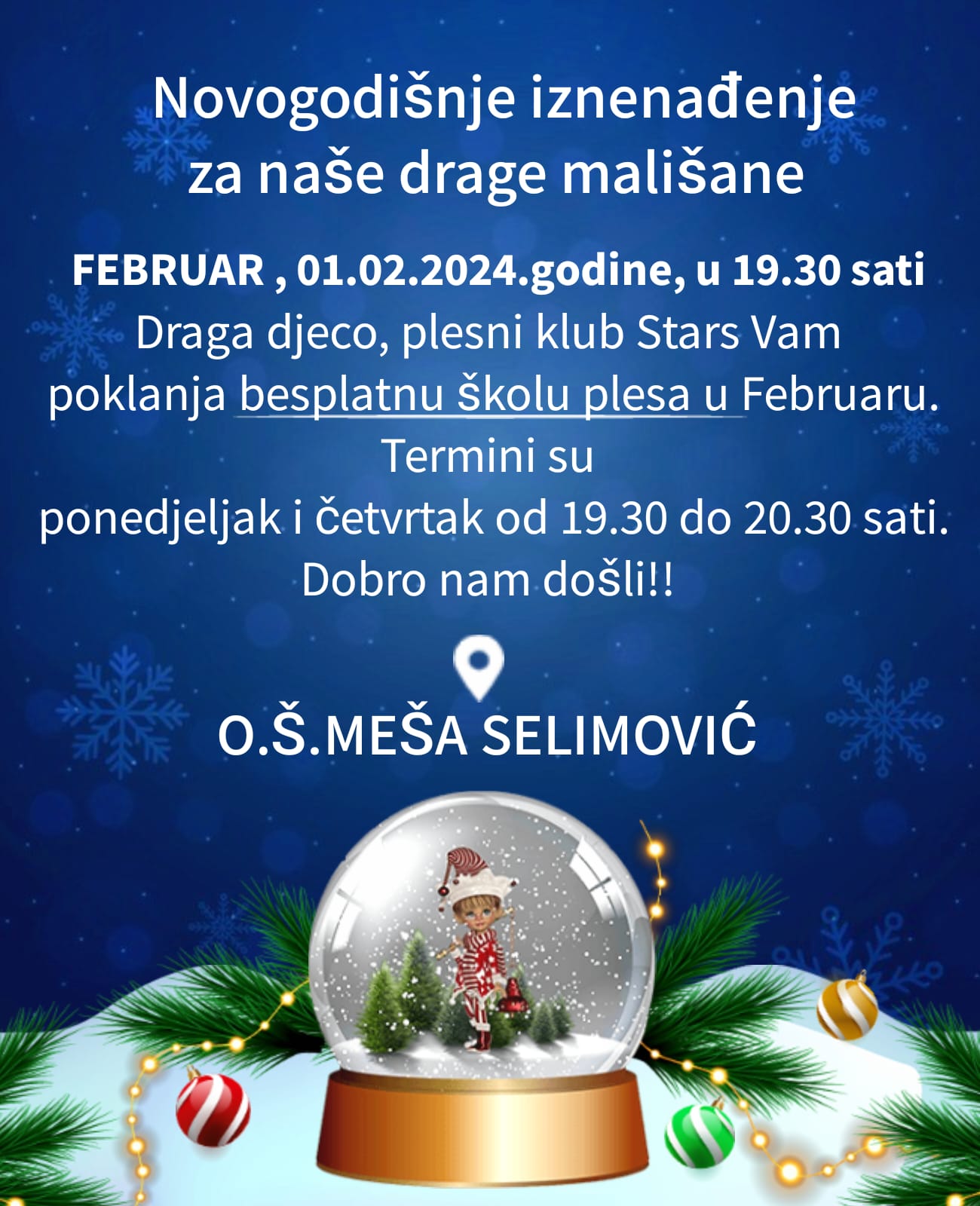 Novogodišnji poklon Plesnog kluba Stars za djecu koja vole i žele da plešu.