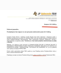 Iz JP Ceste Federacije navode da je Vlada FBiH uputila ovaj Prijedlog prema Predstavničkom domu i Domu naroda Parlamenta FBiH. Prijedlog je usvojen od strane Predstavničkog doma, ali ne i na Domu naroda Parlamenta FBiH.