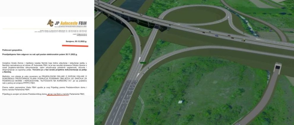 “Inicijativa Grada Zenice i mještana naselja Nemile koja tretira uključenje i isključenje (petlju u Nemiloj) razmatrana je od strane JP Autoceste FBiH, te je kao rezultat donesena Odluka Uprave o izradi projektno-tehničke dokumentacije, zatim ishodovanja potrebnih saglasnosti, dozvola i eksproprijacije za izgradnju petlje. Trenutno je u fazi izrada projektne dokumentacije za petlju u Nemiloj.