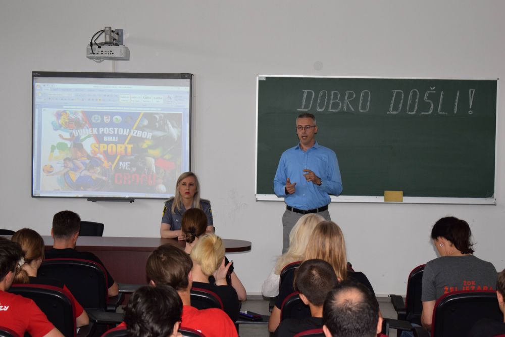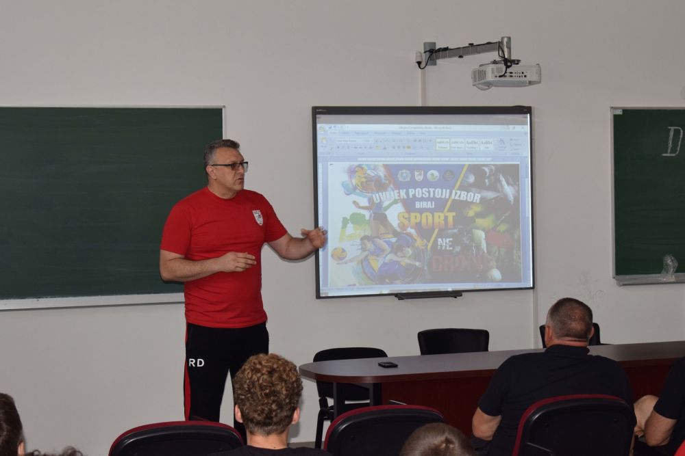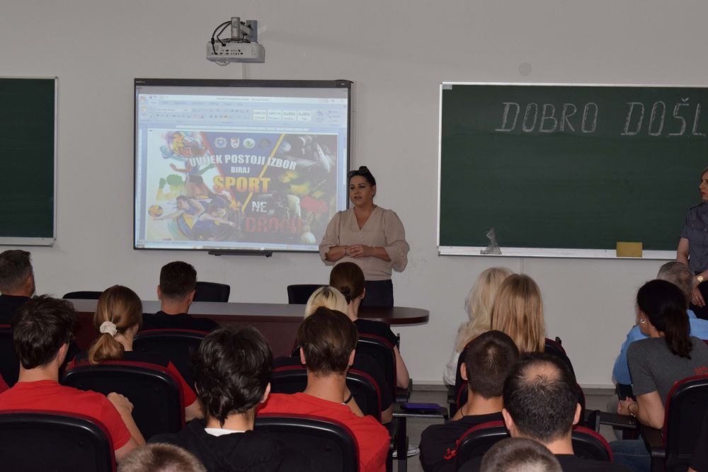 Nakon toga u prostoru Javne ustanove Prva gimnazija u Zenici, gdje se održavao odbojkaški turnir, dijelili su letke građanima sa ključnim porukama kampanje „Uvijek postoji izbor – biraj sport“ i druge edukativne materijale, a sve u cilju podizanja svijesti mladih o važnosti sporta u prevenciji ovisnosti o drogama.