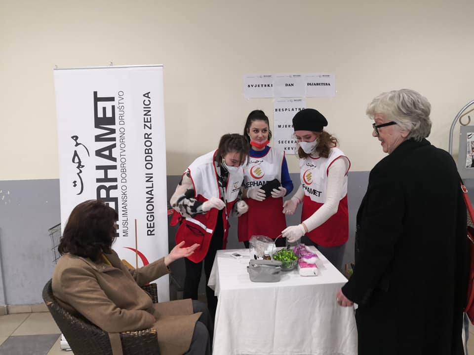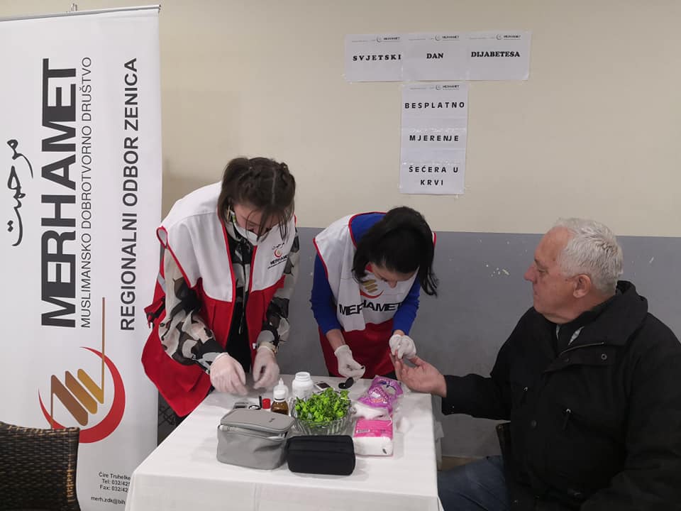 Regionalni odbor „Merhamet“ Zenica i ove godine obilježio je Svjetski dan dijabetesa. Tim povodom danas 12.11.2021. godine organizovano je besplatno mjerenje šećera u krvi i tlaka za sve zainteresovane prolaznike. Akcija je realizovana uz pomoć Merhametovih volonterki koje su vršile mjerenja u TC „Džananović“ u periodu od 11 do 14 sati.