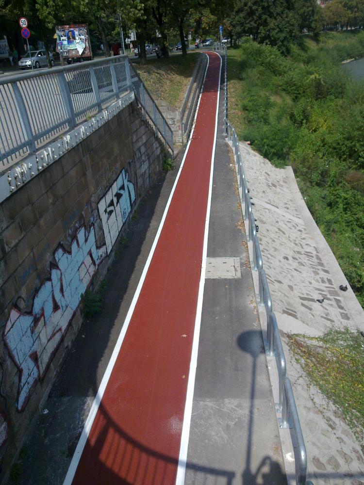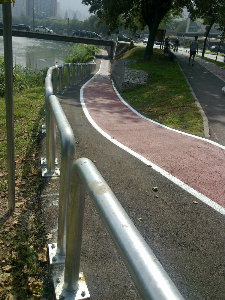 Proteklih dana završeno je obilježavanje dijela pješačko-biciklističke staze od ispod mosta kod Metalurga do izlaza na Bulevar, nizvodno, u dužini oko 50-ak metara.