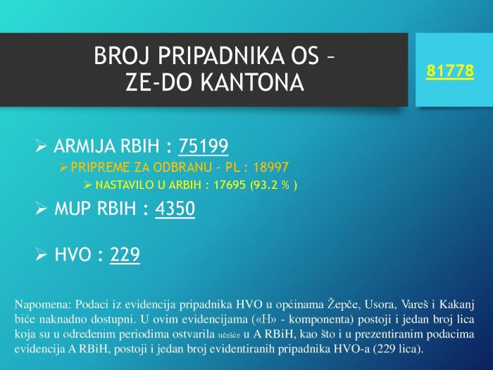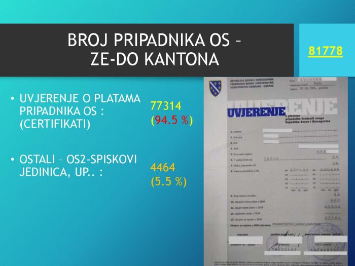 Objavljen Registar pripadnika Trećeg korpusa Armije Republike BiH – Na službenoj web stranici Federalnog ministarstva za pitanja boraca i invalida odbrambeno-oslobodilačkog rata juče je objavljena prezentacija Registara pripadnika Trećeg korpusa Armije Republike BiH u kojem se nalaze kartoni i lični podaci 75.199 osoba sa području Zeničko dobojskog kantona, evidentiranih kao učesnici rata od 1992. do 1995. godine.