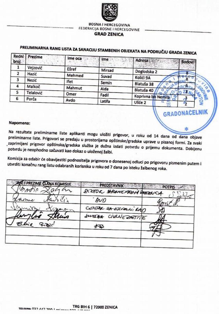 Objavljena imena: Preliminarna lista za sanaciju stambenih objekata na području Grada Zenice – U okviru projekta za izgradnju i sanaciju stambenih objekata na području Grada Zenice koji finansira Evropska unija, a implementira Razvojni program Ujedinjenih nacija (UNDP) u Bosni i Hercegovini (BiH) u partnerstvu sa nevladinim organizacijama Arbeiter-Samarite-Bund (ASB) i Hilfswerk Internationa Austria (HWA), objavljena je preliminarna lista aplikanata. Na rezultate preliminarne liste aplikanti mogu uložiti prigovor, u roku od 14 dana od dana objave preliminarne liste.