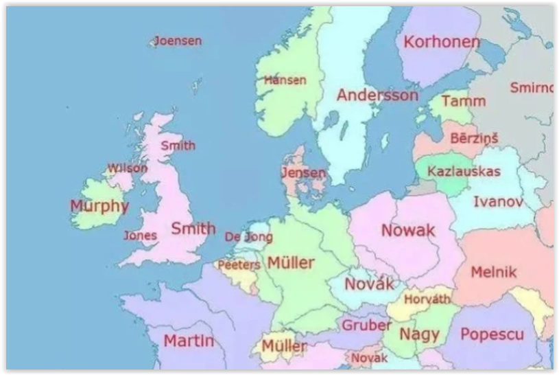 Popularna stranica na internetu “Terrible Maps” objavila je kartu najčešćih prezimena u zemljama Europe.
