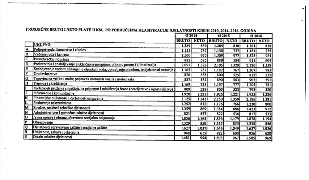 Prosječne bruto i neto plate u KM po područjima klasifikacije možete pogledati OVDJE.