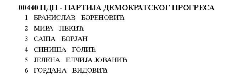 Predsjednik PDP-a Branislav Borenović osigurao se i kompenzacijskom listom za PD PSBIH. Druga na listi je aktualna zastupnica te stranke Mira Pekić.