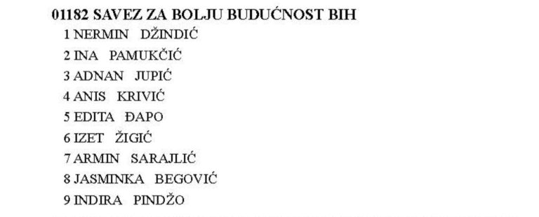 Kompenzacijsku listu Saveza za bolju budućnost nosi Nermin Džindić, aktualni federalni ministar energije rudarstva i industrije. SBB je, podsjećamo, na izborima 2018. godine osvojila dva kompenzacijska mandata.