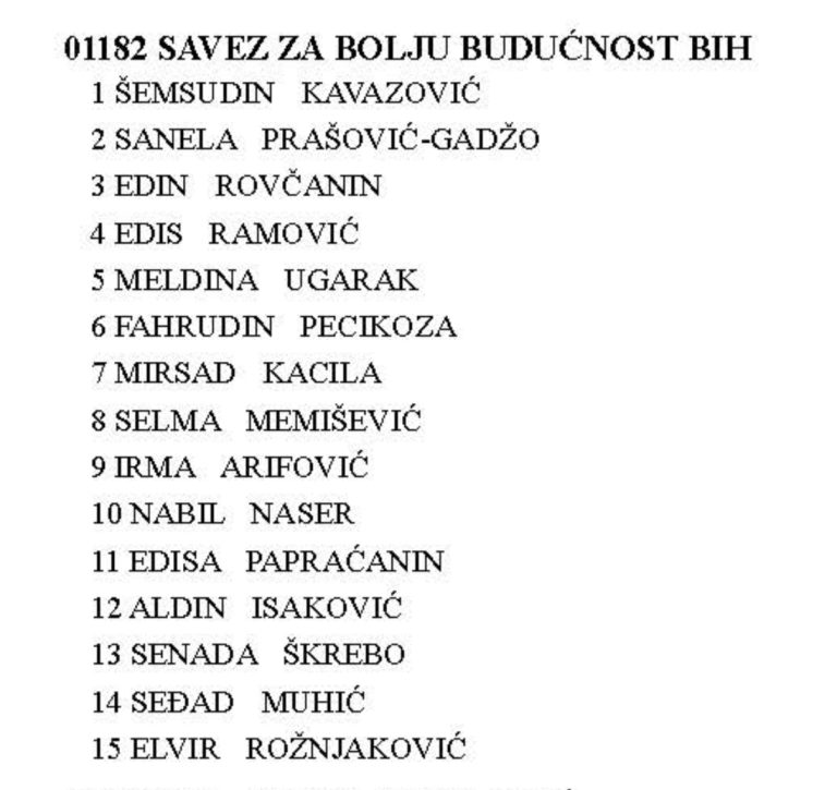 Safet Kešo nosi kompenzacijsku listu SDA. Na drugom mjestu je aktualna ministrica vanjskih poslova BiH Bisera Turković. SDA na kompenzacijskoj listi ima ukupno šest imena.