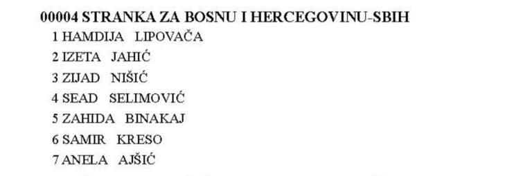 Kompenzacijske listu SBiH-a za Zastupnički dom Parlamenta FBiH nosi Safet Omerović, Bosanske stranke Fatmir Alispahić, PDA Elzina Pirić, Koalicije Država Jasmina Numanović-Stjepanović, HDZ-a BiH Mario Karamatić, Naroda i Pravde Halil Bajramović.