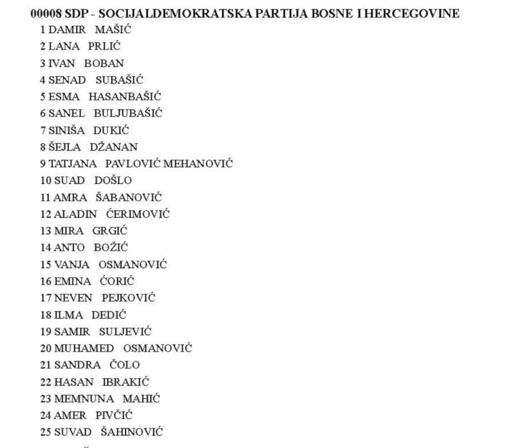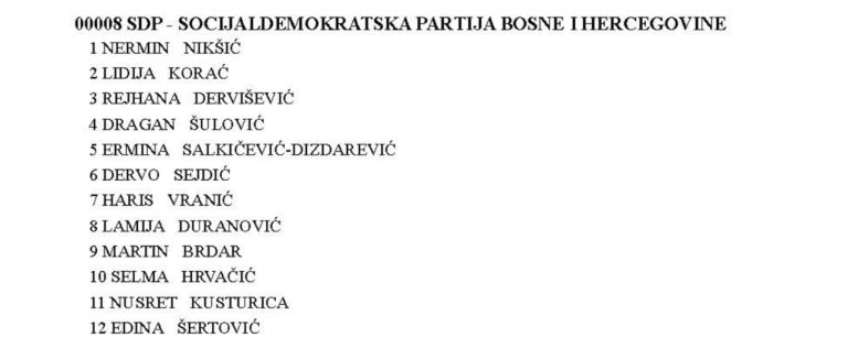 Predsjednik SDP-a BiH Nermin Nikšić nosilac je kompenzacijske liste te stranke za Predstavnički dom Parlamentarne skupštine BiH. Podsjećamo, Nikšić je i u aktualni saziv Predstavničkog doma PS BiH ušao sa kompenzacijske liste. Na mjestu broj dva SDP-ove državne kompenzacijske liste je Lidija Korać. Na fotografiji ispod možete vidjeti kompletnu SDP-ovu kompenzacijsku listu.