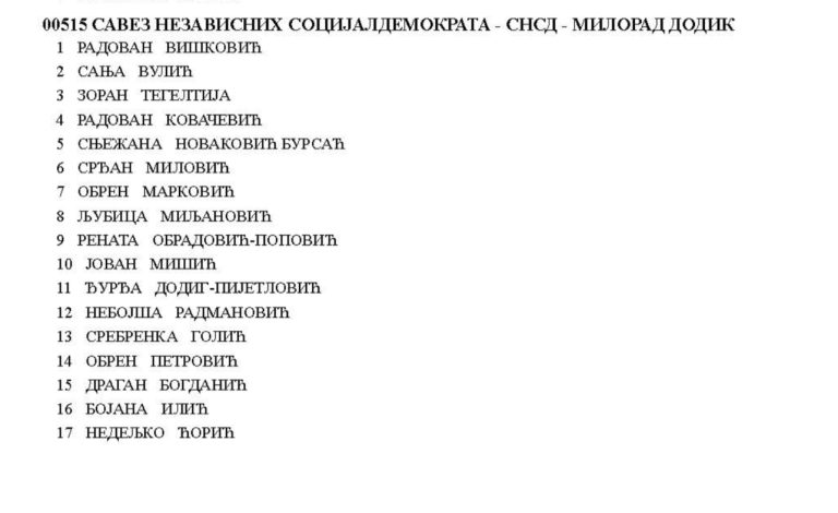 Kada su u pitanju državne kompenzacijske lise iz Republike Srpske, SNSD-ovu nosi aktualni premijer RS-a Radovan Višković. Na drugom mjestu je Sanja Vulić, a na trećem aktualni predsjedavajući Vijeća ministara BiH Zoran Tegeltija.