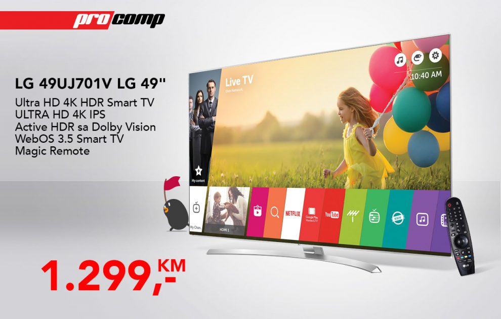 Obogatite svoj dom uz najtraženiji model LG TV LED samo za 1.299 KM! Za vas smo pripremili televizor model LG TV LED 49UJ701V po akcijskoj cijeni koja važi do 31.03.2018.