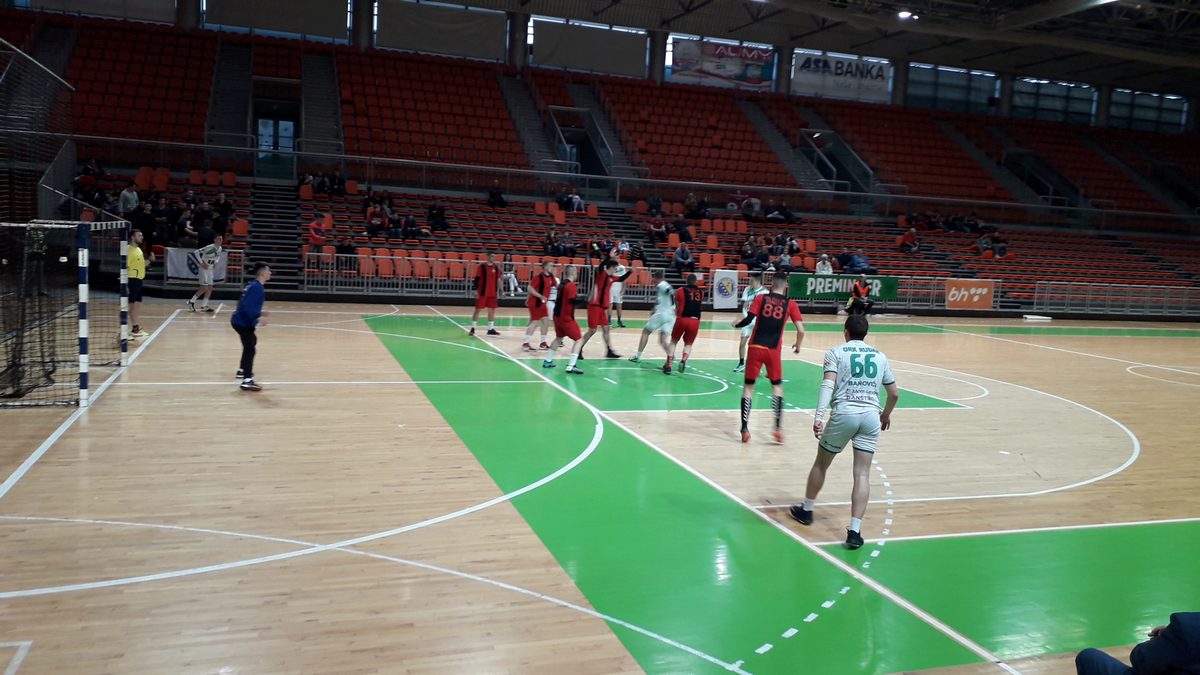 Tokom prvog poluvremena domaćin je stalno držao prednost na četiri i više golova, a na kraju prvog poluvremena domaćin je imao prednost od 9 golova (20:11).