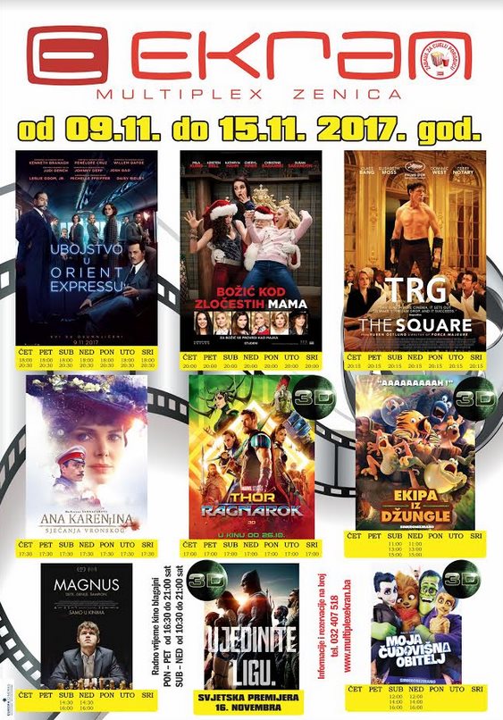 Od 09. Novembra u Multiplexu Ekran ne propustite pogledati krimi dramu “UBISTVO U ORIENT EXPRESSU” prema istoimenom romanu “kraljice krimića” Agathe Christie s Herculeom Poirotom u glavnoj ulozi i komediju isprepletenu dramom “TRG”