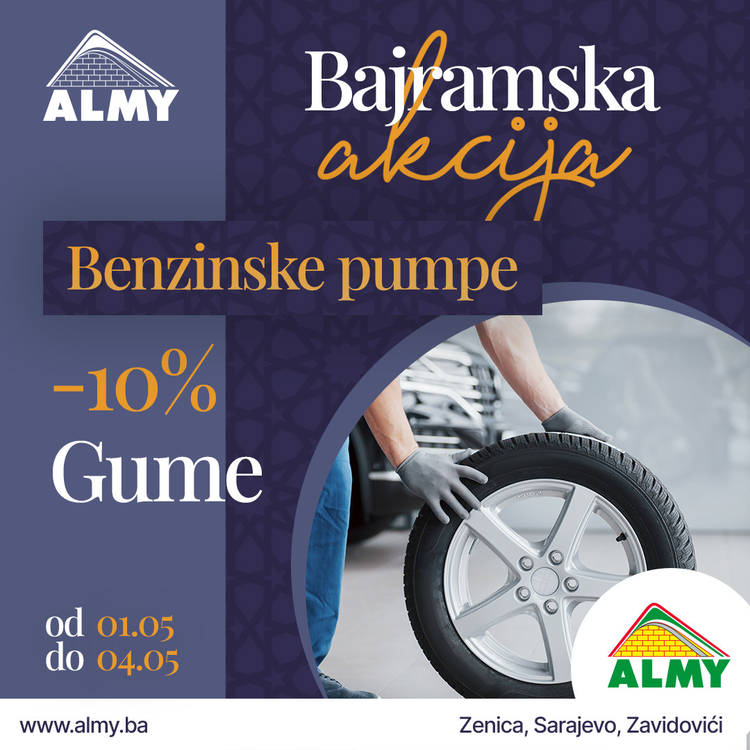 Od 01.05. do 04.05.2022. godine očekuje vas tradicionalna bajramska akcija na benzinskim pumpama Almy, sipajte gorivo vrhunske kvalitete povoljnije za 🔖 -10 feninga po litri. Bajram Šerif Mubarek Olsun, benzinske pumpe Almy 🟢