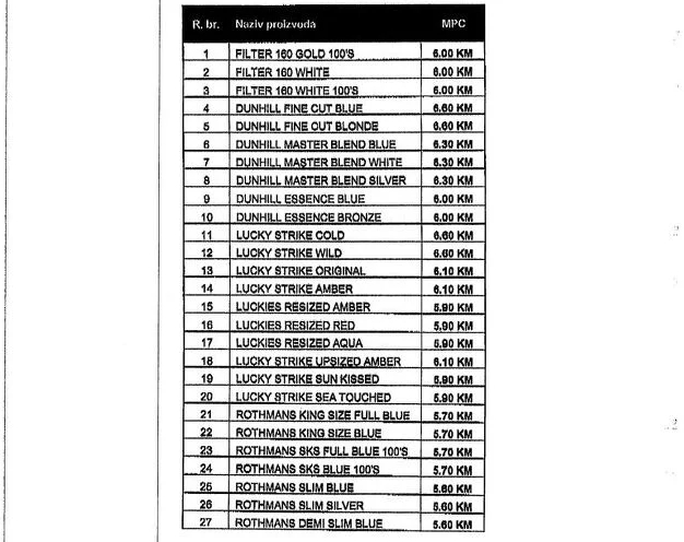 Ukazali su da se prvo poskupljenje očekuje od 19. februara i to se odnosi na cigarete koje na tržište Bosne i Hercegovine plasira kompanija TDR Sarajevo.