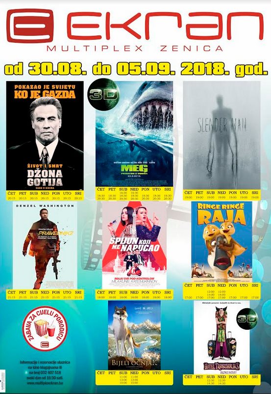 Posljednja sedmica augusta od 30.08. donosi krimi akciju od Johnu Gotiju “GOTTI”, horor misteriju od koje se ledi krv u žilama “SLENDER MAN” i animirana avantura za najmlađe posjetioce “RINGE, RINGE, RAJA”