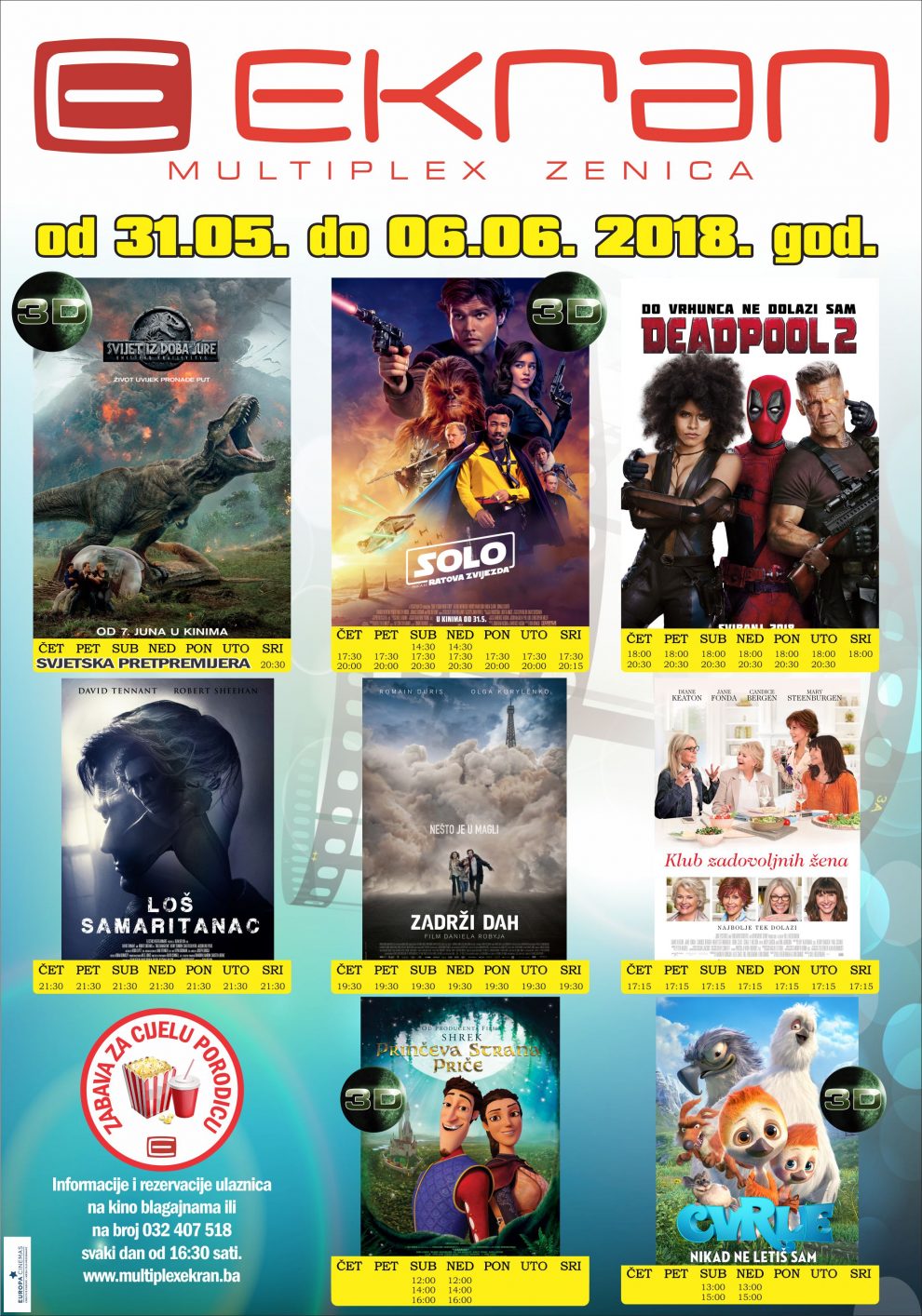 Dodatni termini subotom i nedjeljom od: 14:30, 17:30 i 20:00 sati