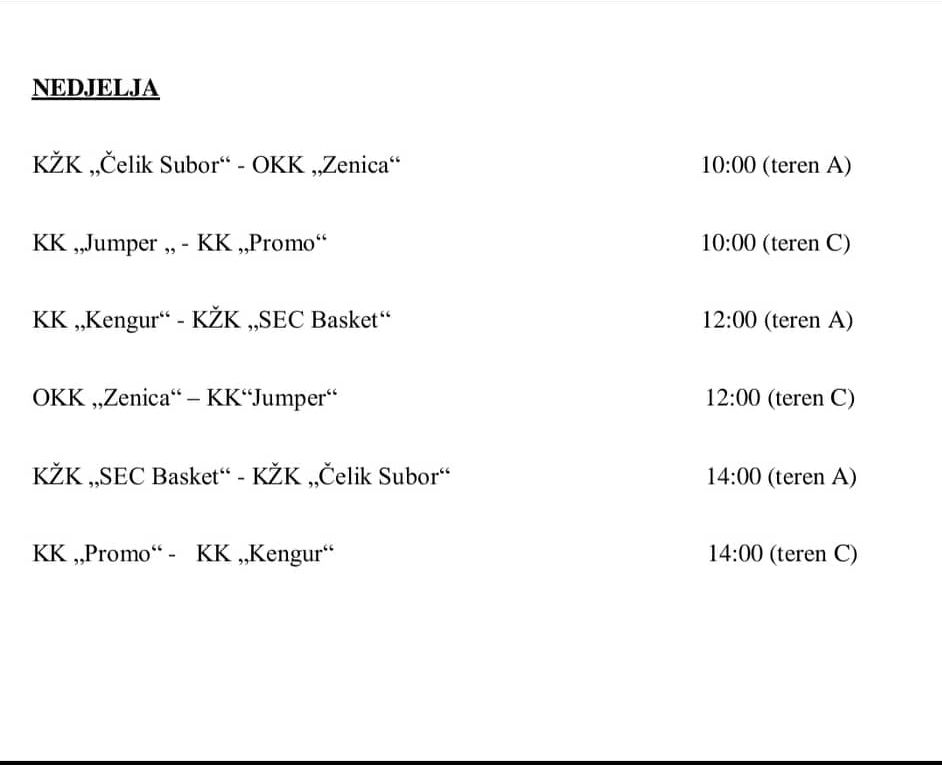 – Ove godine se održava naš tradicionalni turnir 5. turnir „Ja sam košarkašica”. Prve na teren izlaze naše predpionirke, petak u 18 sati, teren C, gdje se sastaju sa svojim vršnjakinjama iz KŽK Čelik Subor, dok u drugom susretu sastaju se ekipe KK Kengur i OKK Zenica, petak u 19,30 sati, teren C.