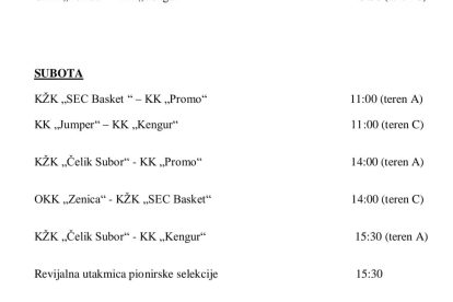 Za subotu od 15,30 predviđena je revijalna utakmica pionirske selekcije.