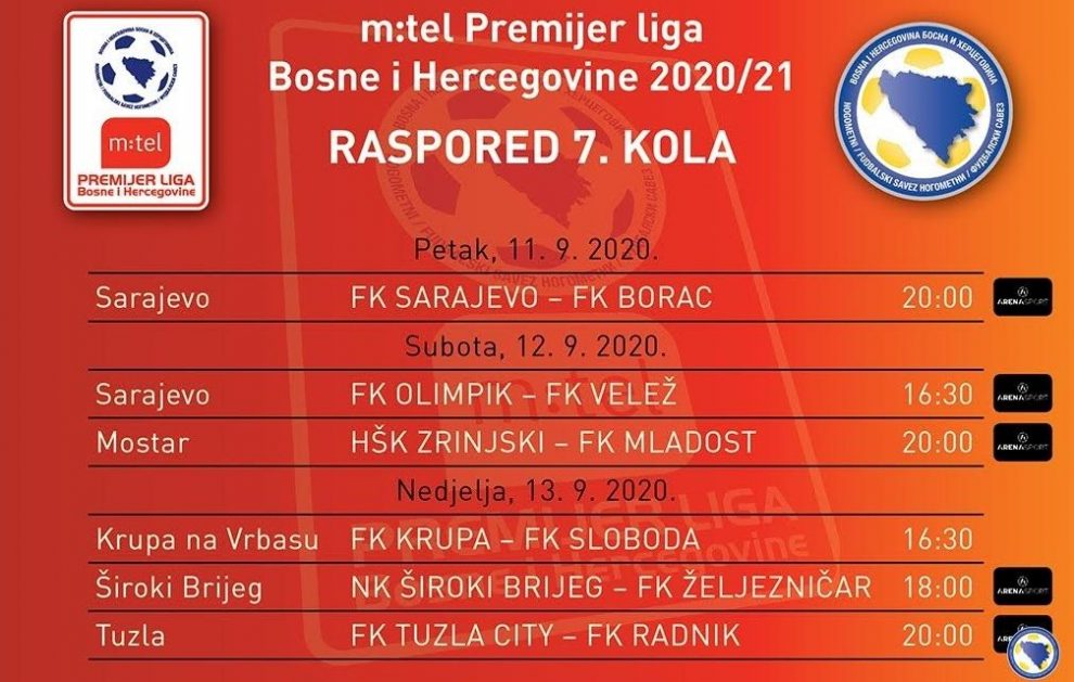 Nakon reprezentativne pauze zbog igranja dvije utakmice naše reprezentacije u Ligi nacija, predstojećeg produženog vikenda nastavlja se m:tel Premijer liga Bosne i Hercegovine utakmicama sedmog kola u kojima ćemo imati dva velika derbija, kao i pet direktnih TV prijenosa na Arena Sportu.