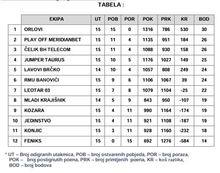 KŽK Čelik BH Telecom je sada na omjeru od 11 pobjeda i četiri poraza, 3.mjesto, 26 bodova.