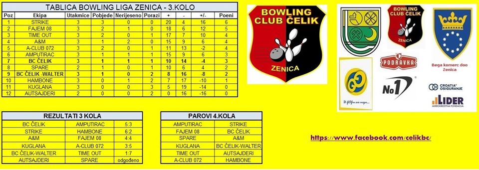 Odigrano treće kolo BOWLING Lige Zenica – Tokom protekle sedmice odigrani su susreti trećeg kola Bowling Lige Zenica za sezonu 2019/2020, osim susreta Autsajderi – Spare, koji je odgođen.