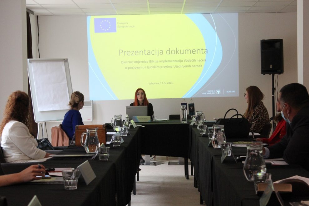 Institut za razvoj mladih KULT u partnerstvu sa Ministarstvom za ljudska prava i izbjeglice BiH, uz podršku Evropske unije organizirao je sastanak sa predstavnicima svih nivoa vlasti u BiH kako bi ih upoznali sa dokumentom „Okvirne smjernice BiH za implementaciju Vodećih načela Ujedinjenih naroda o poslovanju i ljudskim pravima 2021 – 2025“.