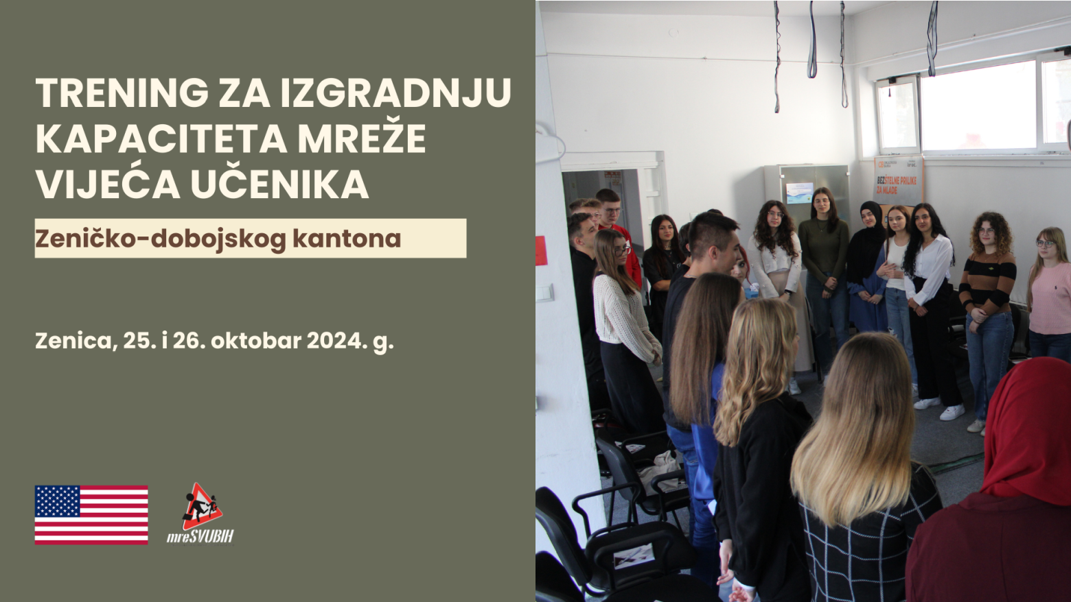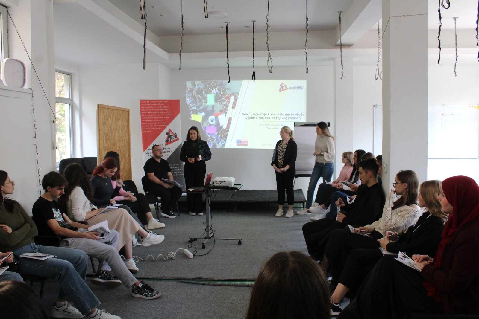 MreSVUBiH trening izgradnje kapaciteta Mreže vijeća učenika okupio je srednjoškolce Zeničko-dobojskog kantona koji su imali priliku usvajati znanja i vještine iz oblasti liderstva, javnog nastupa, timskog rada, te rješavanja konflikta. Ove vještine su srednjoškolcima ključne za uspješnu saradnju i vođenje Vijeća učenika, kao i za osnaživanje mladih lidera koji će doprinijeti izgradnji mirne i solidame zajednice. Učesnici su također diskutovali o miru i pomirenju, putu do njih, te njihovoj važnosti za budućnost naše zemlje. Obrađene su teme kao što su prevencija maloljetničke delikvencije i vršnjačkog nasilja.