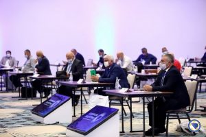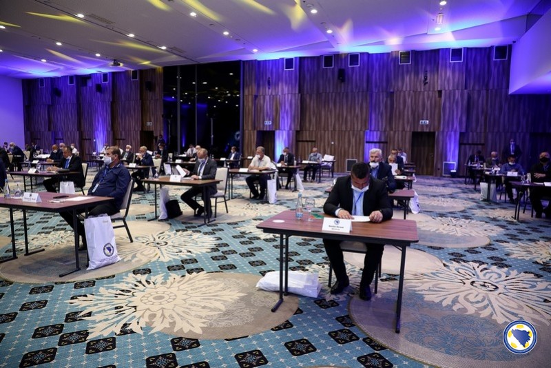 Zbog specifične situacije uslijed pandemije korona virusa, učesnici sjednice su bili smješteni u nekoliko hotelskih sala, povezanih video linkom.