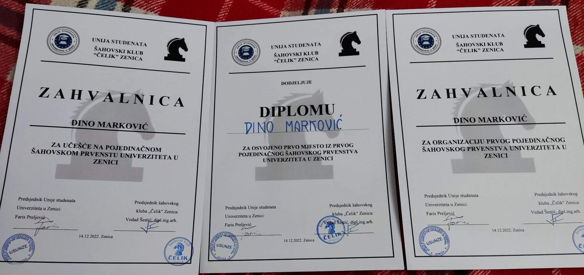 U organizaciji Unije Studenata Univerziteta Zenica i Šahovskog kluba “Čelik” Zenica, sinoć, 14.12.2022. godine. sa početkom od 19,00 sati, održano je PRVO POJEDINAČNO PRVENSTVO UNIVERZITETA GRADA ZENICE ZA 2022. GODINU.