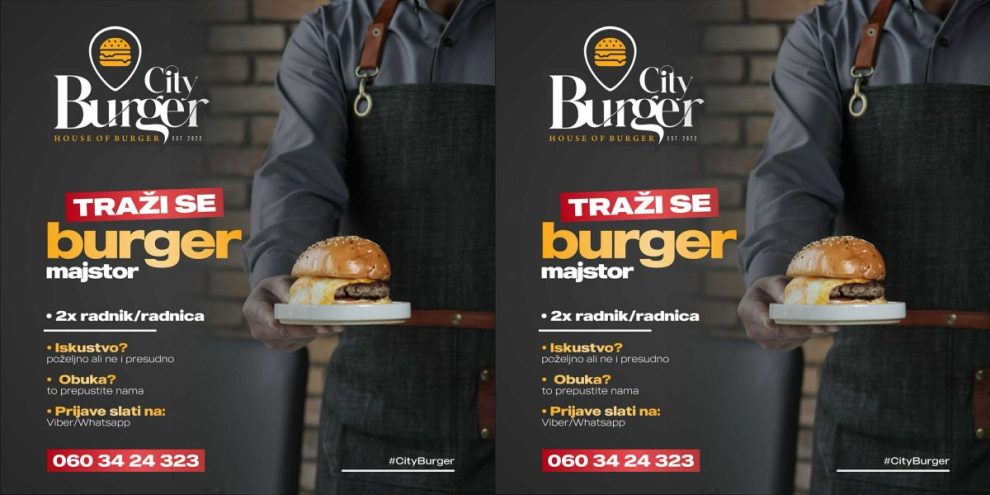 Oglas za posao: City Burger Zenica traži radnike!- Oglas za posao: radnik za roštiljem (fast food)