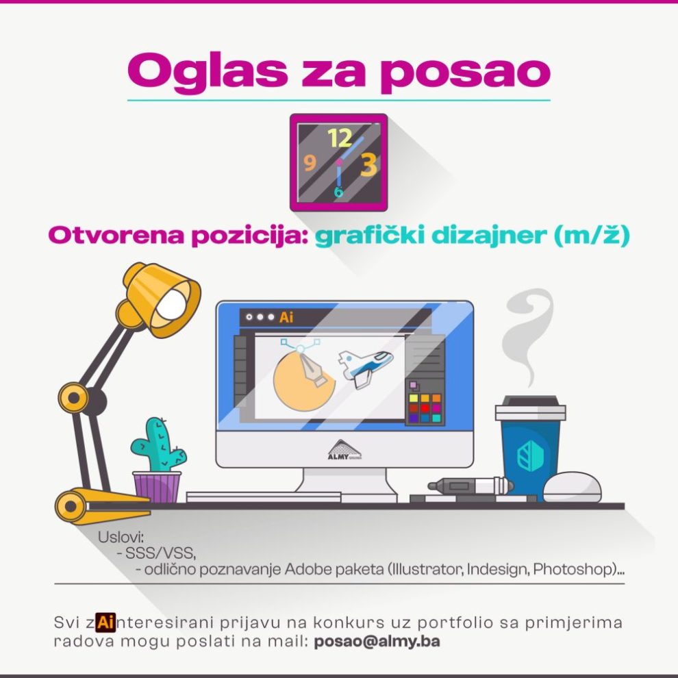Oglas za posao: Grafički dizajner- Almy d.o.o. Zenica objavljuje konkurs za prijem u radni odnos: