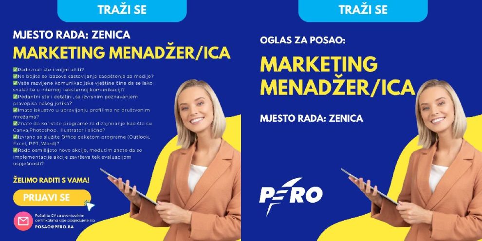 Broj pozicija: Marketing menadžer (M/Ž) – 1 izvršilac
