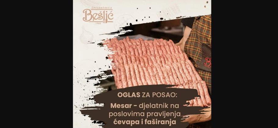 Usljed ukazane potrebe za prijem zaposlenika u radni odnos u firmi “Ćevabdžinica Bešlić”, objavljuje se oglas za sljedeće radno mjesto: