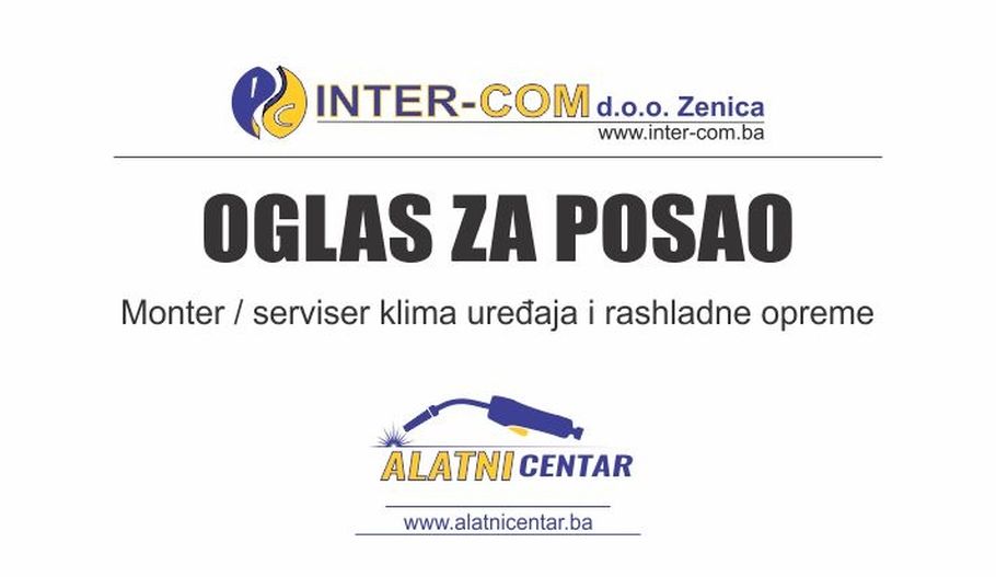 Monter / serviser klima uređaja i rashladne opreme – 4 izvršioca sa radnim iskustvom na istim ili sličnim poslovima.