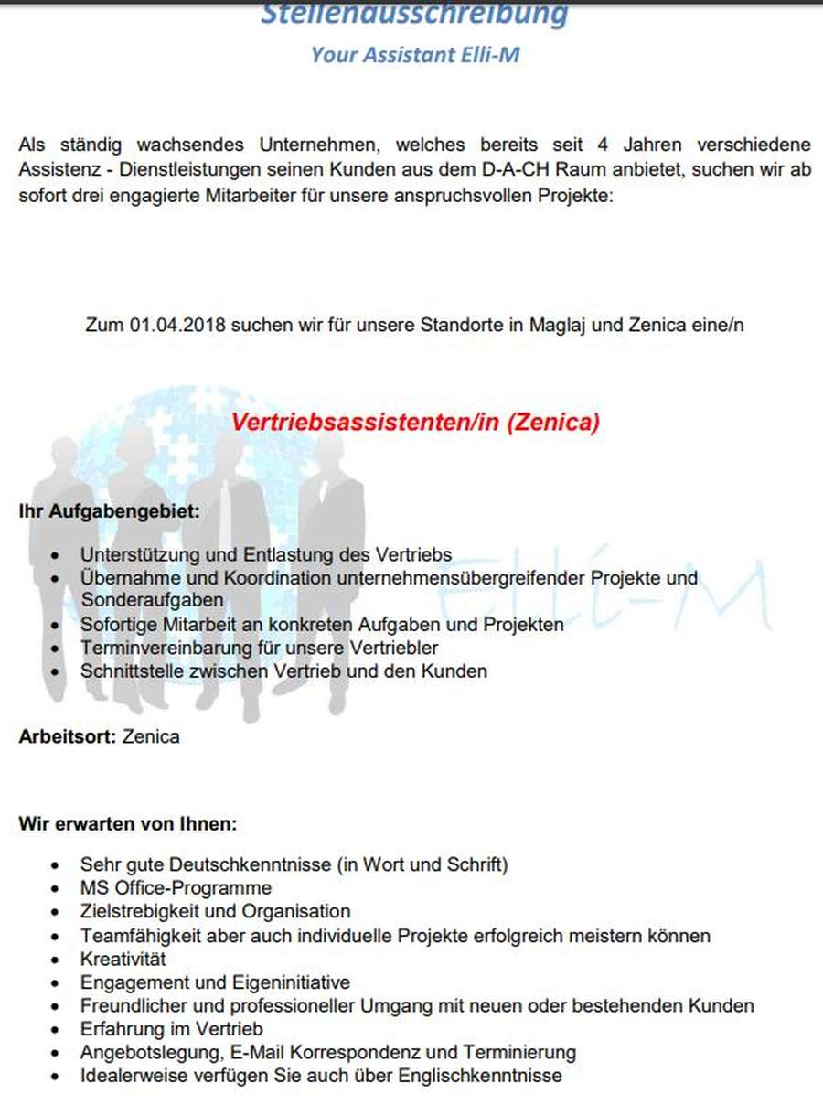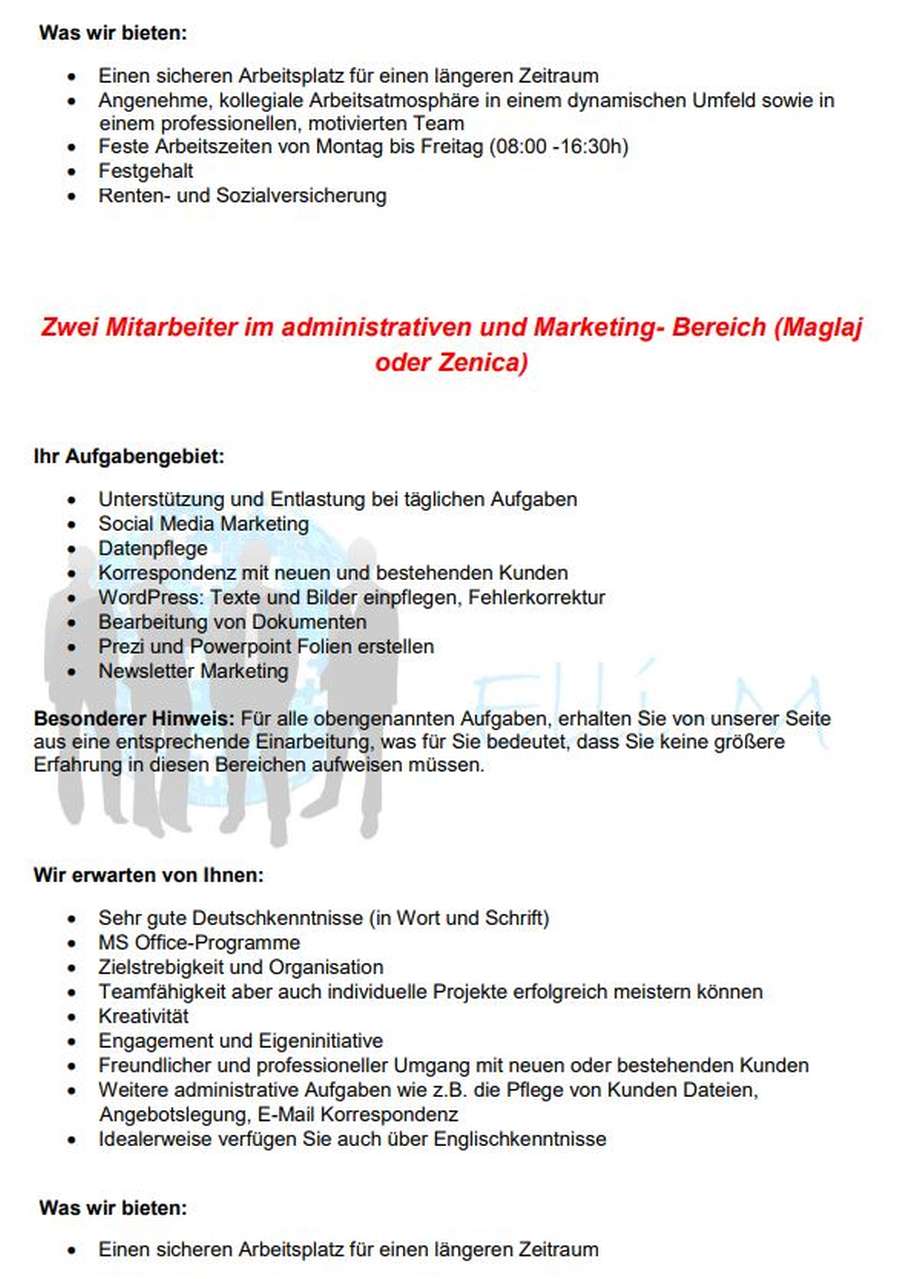 Oglas za posao (na njemačkom jeziku) – Prenosimo vam oglas za posao –