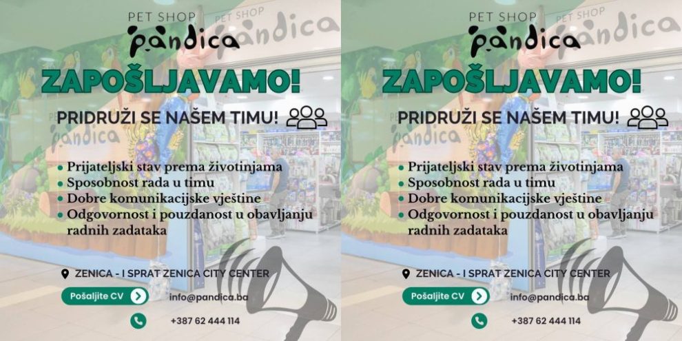 ‼️KONKURS ZA POSAO U PET SHOPU PANDICA‼️ ZENICA
