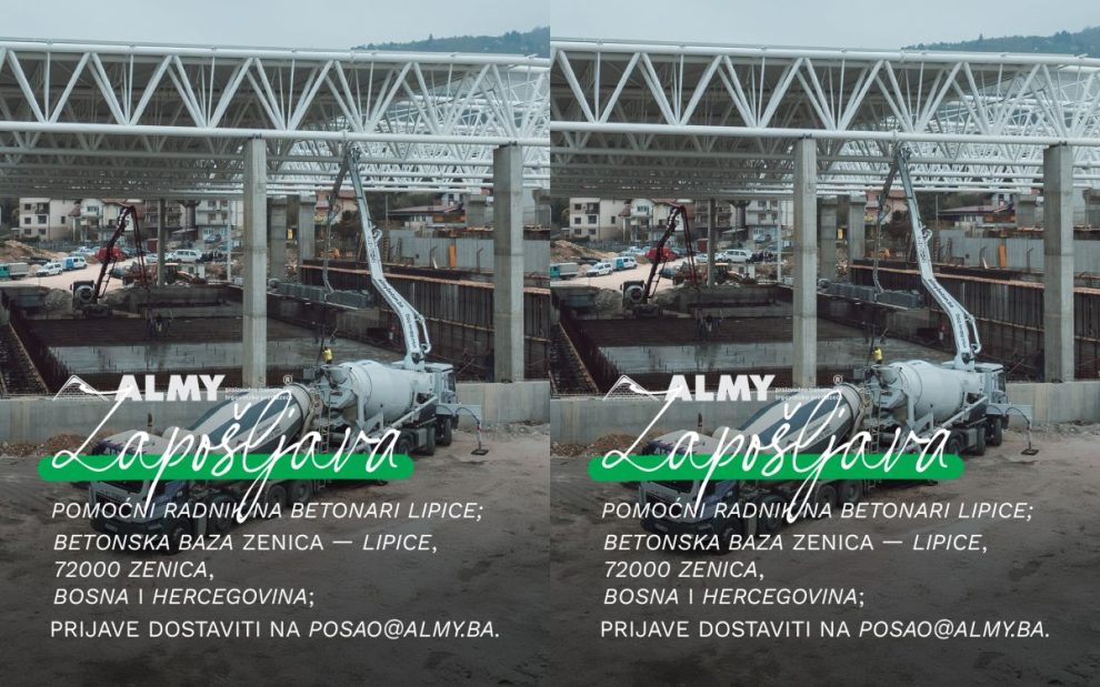 Svi zainteresovani, CV sa naglaskom „Pomoćni radnik – Betonara Lipice’’, mogu dostaviti na e-mail: [email protected].