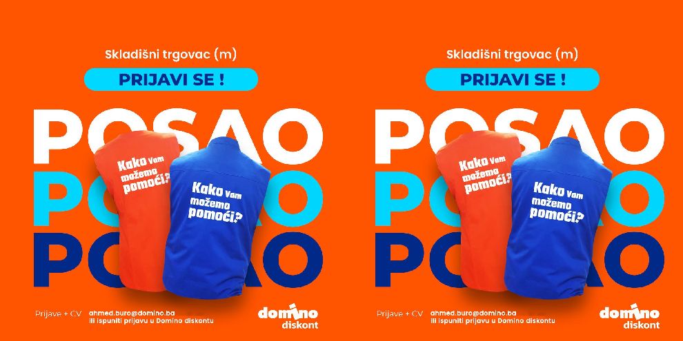Ako smatraš da si prava osoba za ovu ulogu, prijavi se osobno popunjavanjem prijavnice na blagajni Domino Diskonta ili putem e-maila [email protected].
