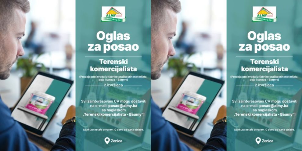 Oglas za posao: Terenski komercijalista- Almy d.o.o. Zenica objavljuje konkurs za prijem u radni odnos: