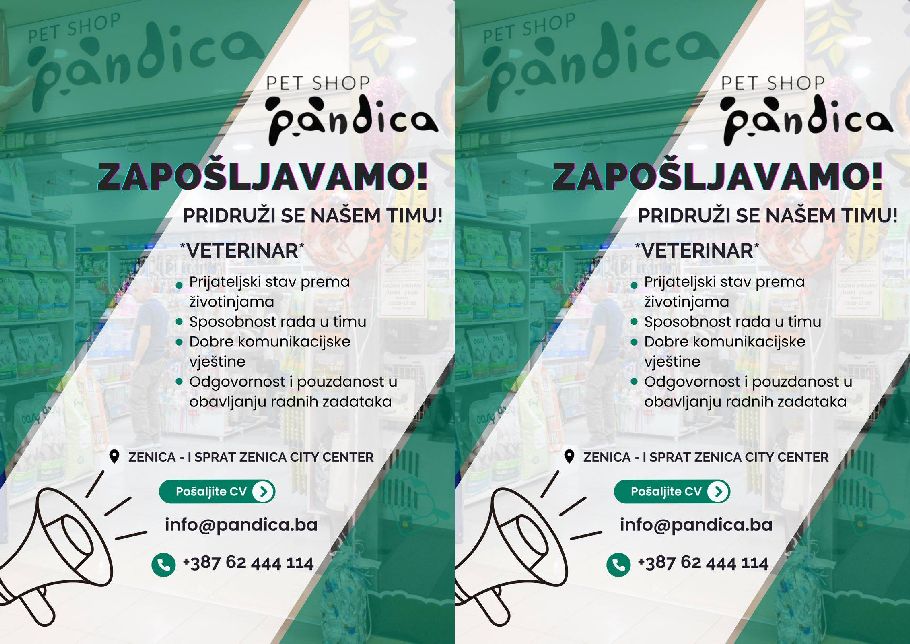 Pet Shop Pandica raspisuje konkurs za prijem veterinara u radni odnos.