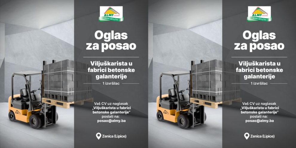 Almy d.o.o. Zenica – Oglas za posao- Kompanija Almy d.o.o. Zenica objavljuje konkurs za prijem u radni odnos na poziciju: