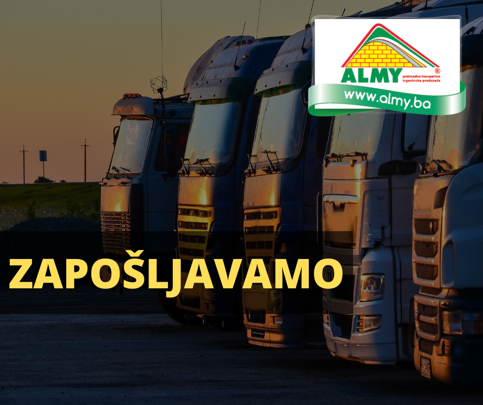 Postanite dio našeg tima! Almy d.o.o. kompanija već 30 godina slovi za poslovni sistem koji kontinuirano postavlja više standarde u oblasti trgovine, proizvodnje i usluge. Trenutno smo u procesu širenja poslovanja, ako ste spremni za nove izazove, kao i na visoke standarde kvaliteta u radu i pružanju usluga, predlažemo da se prijavite na otvorenu poziciju: